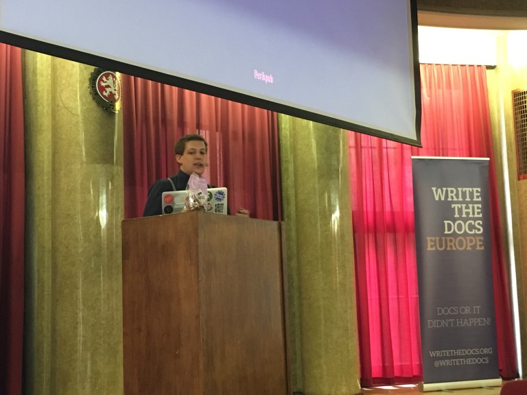 Below are my notes and highlights from this session at Write The Docs Europe 2016 in Prague. This is part of a series I wrote during the conference. This is not meant to be transcriptions and may have missed points made during they talk. They solely reflect my interpretations of the talk.