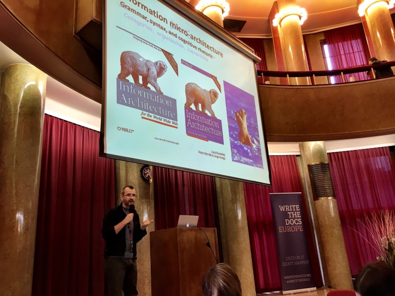 Below are my notes and highlights from this session at Write The Docs Europe 2016 in Prague. This is part of a series I wrote during the conference. This is not meant to be transcriptions and may have missed points made during they talk. They solely reflect my interpretations of the talk.